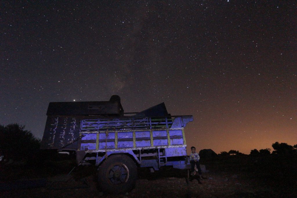 تظهر مجموعة صور التقطها مصوّر موقع “ميدل إيست أي” في إدلب مشهداً من الدمار في المحافظة، والذي كان مضاء بانعكاسات مجرة “درب التبانة” في السماء.