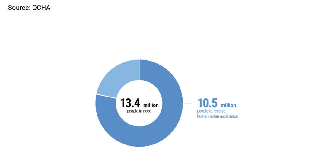 وتهدف الوكالات الإنسانية إلى تقديم المساعدة الطارئة المنقذة للحياة إلى 10.5 مليون من 13.4 مليون شخص محتاج هذا العام.
