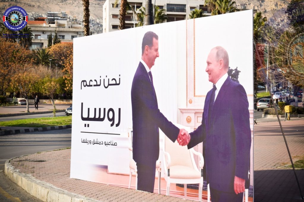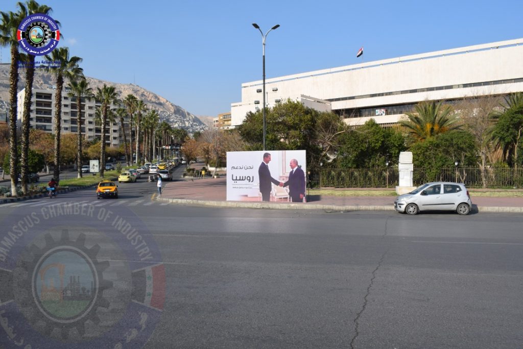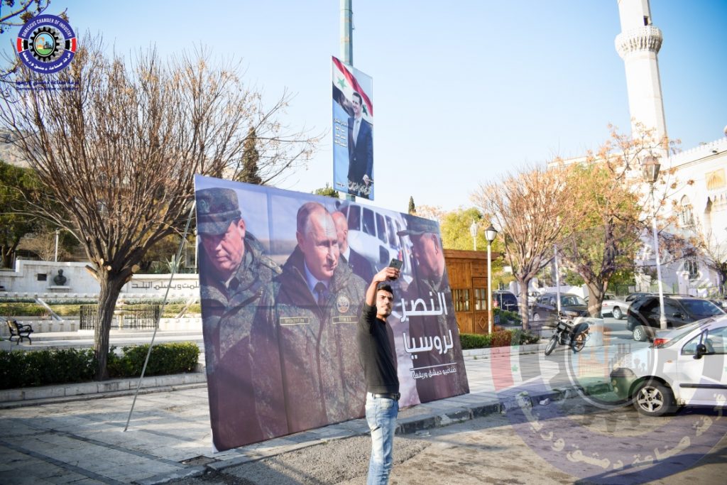 نشرت “غرفة صناعة دمشق وريفها”، صور الرئيس الروسي، فلاديمير بوتين، في شوارع العاصمة دمشق.