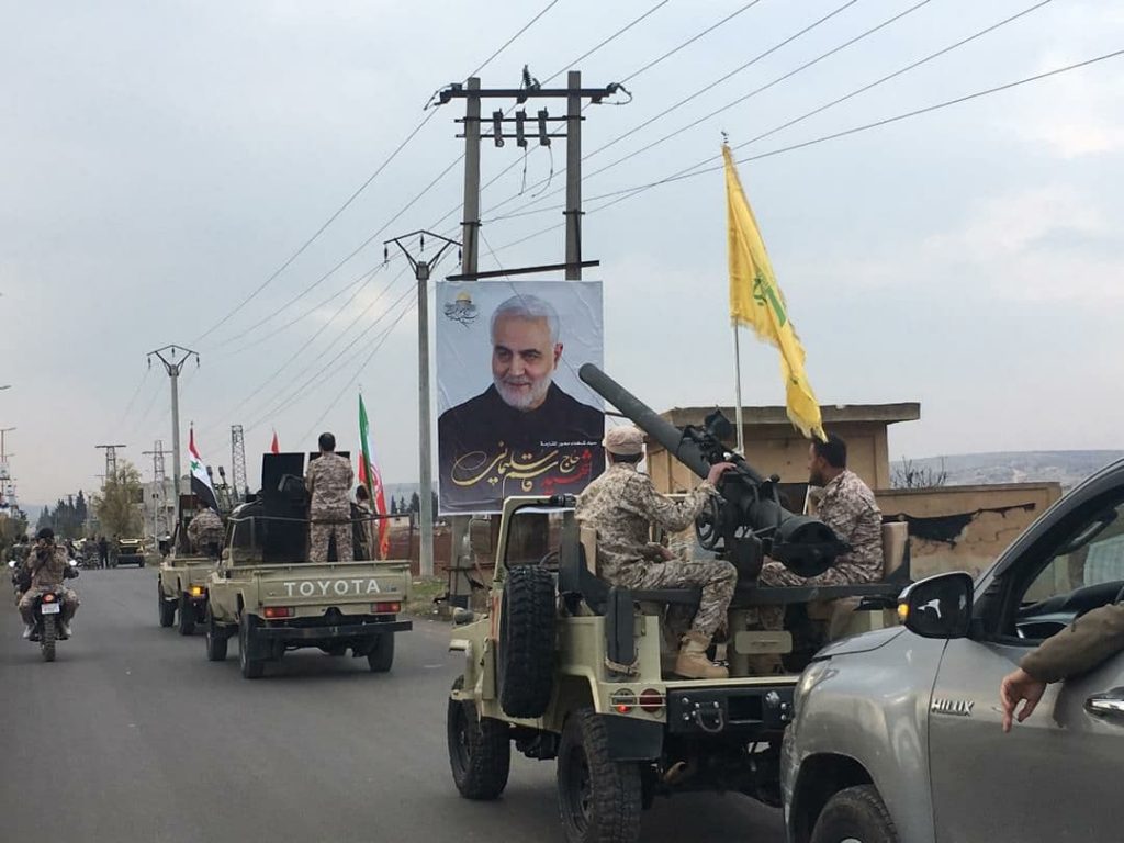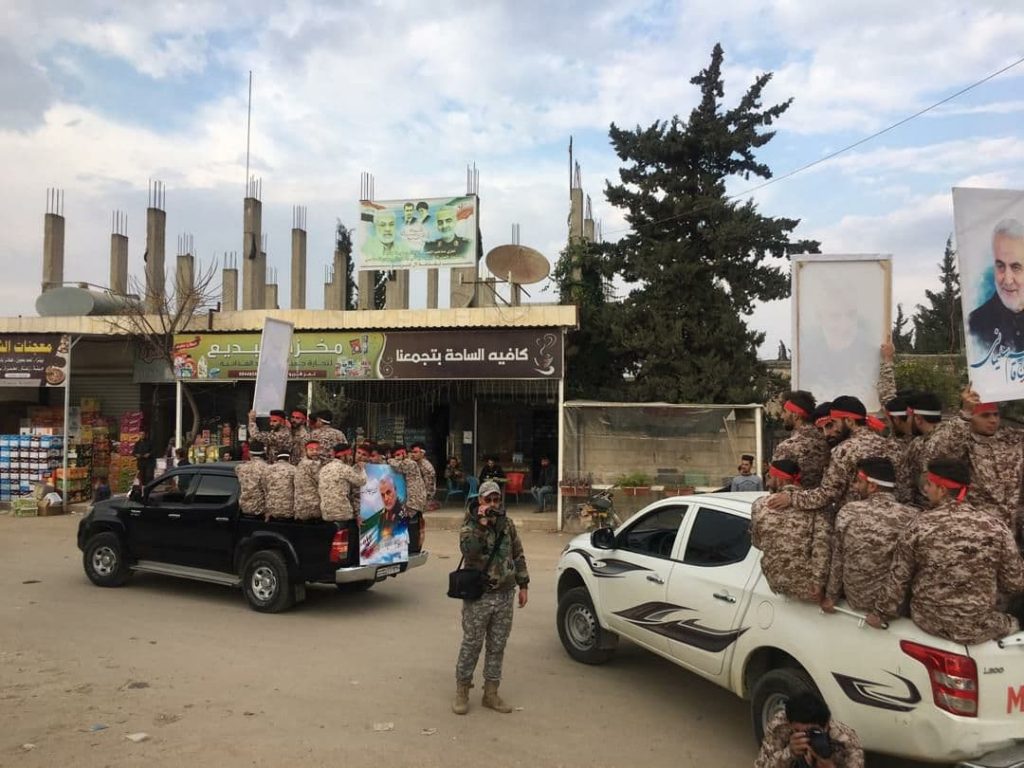 أحيّت بلدتا نبل والزهراء في ريف حلب الشمالي الذكرى الأولى لمقتل قائد “فيلق القدس” الإيراني، قاسم سليماني، من خلال موكب جاب الشوارع والساحات، ورفعت فيه صورٌ للأخير ورايات لـ”حزب الله” اللبناني.