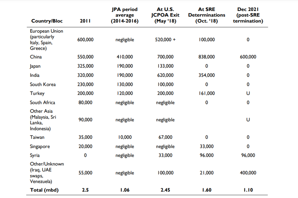 وحسب التقرير الذي ترجمه فريق “السورية.نت”، فإن إيران صدرت النفط إلى أربعة دول عام 2021، هي الصين وسورية والعراق وفنزويلا.
