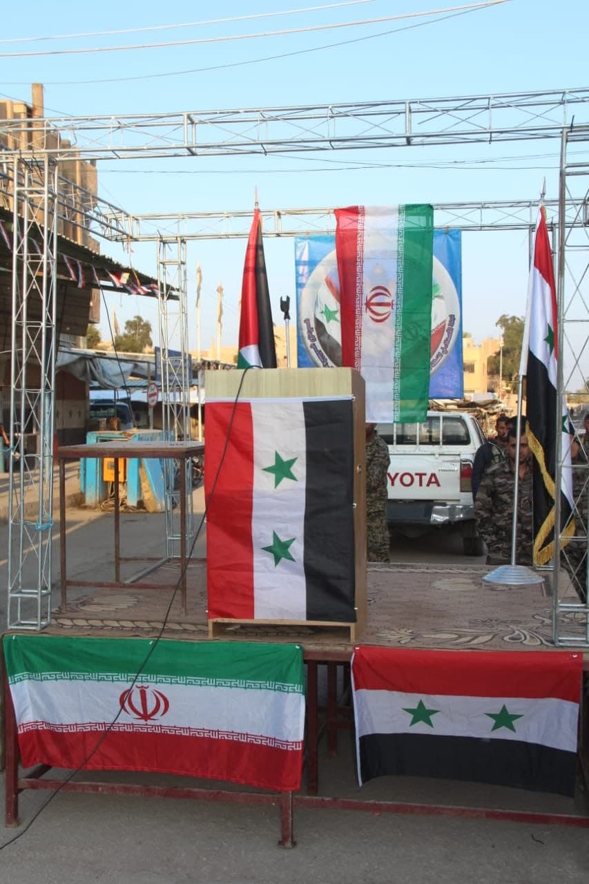 وبحسب صور نشرتها وسائل إعلام موالية لإيران، اليوم الأربعاء، حضر الاحتفال ضباط في قوات الأسد إلى جانب شخصيات إيرانية.