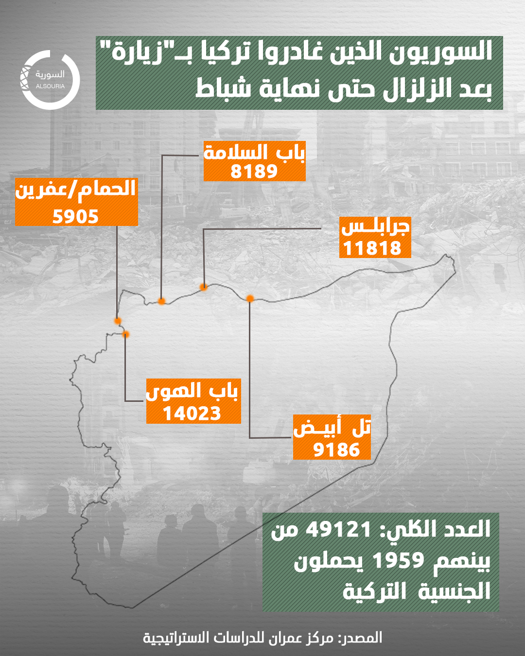 أكثر من 49 ألف سوري غادروا تركيا إلى الشمال السوري بعد الزلزال في 01/03/2023 السوريون الذين دخلوا إلى الشمال السوري بزيارة استثنائية بعد الزلزال مشاركة السوريون الذين دخلوا إلى الشمال السوري بزيارة استثنائية بعد الزلزال المصدر السورية.نت تركيازلزالزيارة استثنائيةسوريامعبر الحماممعبر السلامةمعبر باب الهوىمعبر تل أبيض مشاركة
