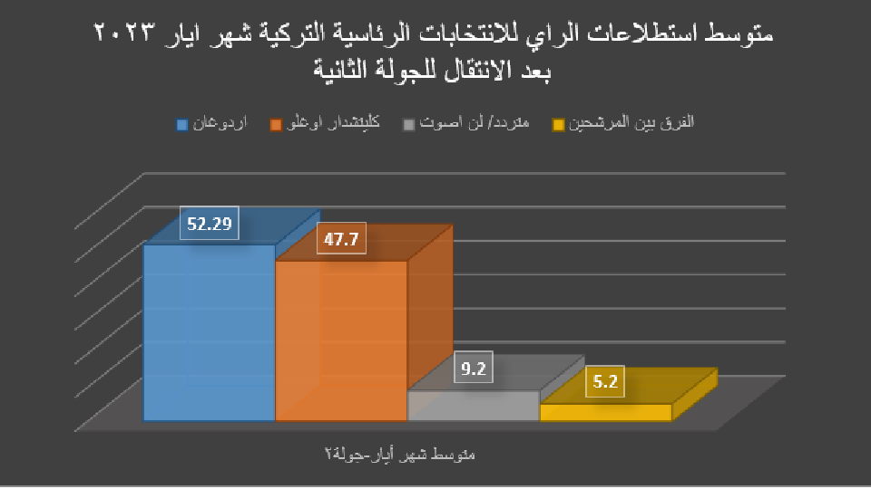جدول متوسط استطلاعات الراي حول الانتخابات الرئاسية التركية شهر أيار 2023- بعد الانتقال للجولة الثانية