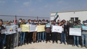 يواصل معلمون في ريف حلب الشرقي إضرابهم عن العمل، عبر تنظيم وقفات احتجاجية، أصروا خلالها على تنفيذ مطالبهم التي نادوا بها قبل أيام، والمتمثلة بزيادة الرواتب وتحسين واقع القطاع التعليمي في المنطقة.