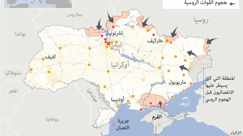 وتشن روسيا هجمات في ثلاث مدن: كييف في الشمال وخاركيف في الشمال الشرقي وخرسون في الجنوب، بينما تقاتل القوات الأوكرانية للسيطرة على هذه المدن الرئيسية.