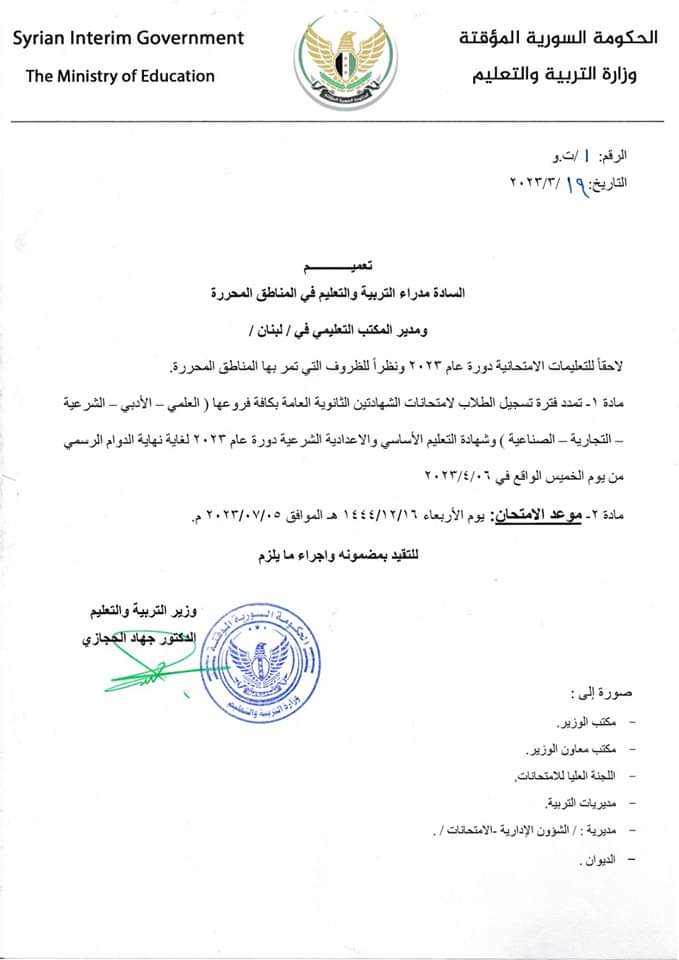 وأكد الوزير أنّ “وزارة التربية والتعليم في “المؤقتة”، ما زالت تدير العملية الامتحانية للشهادتين الإعدادية والثانوية في منطقة شمالي غربي سورية، وتمنح الشهادات وتختم عليها.