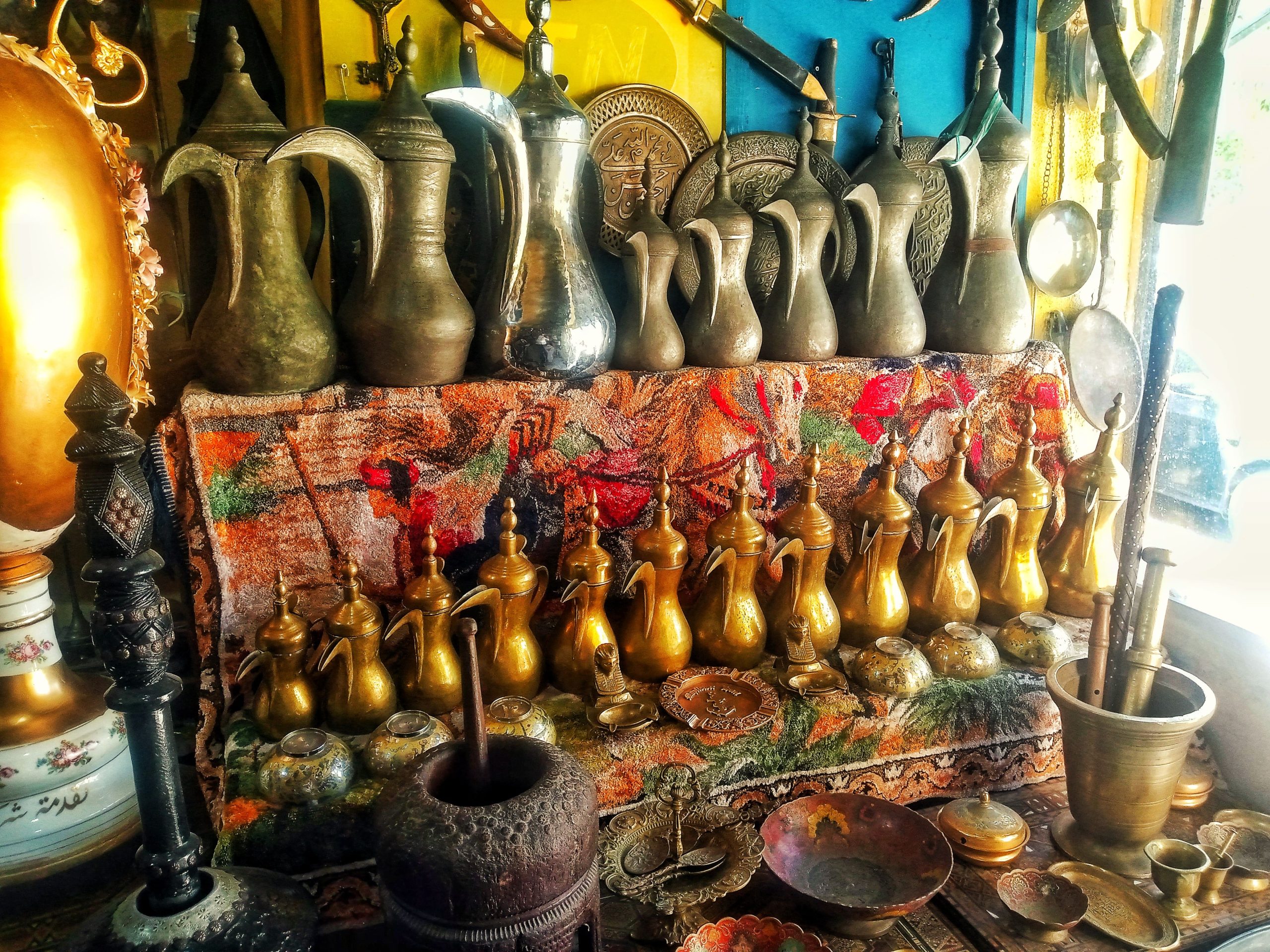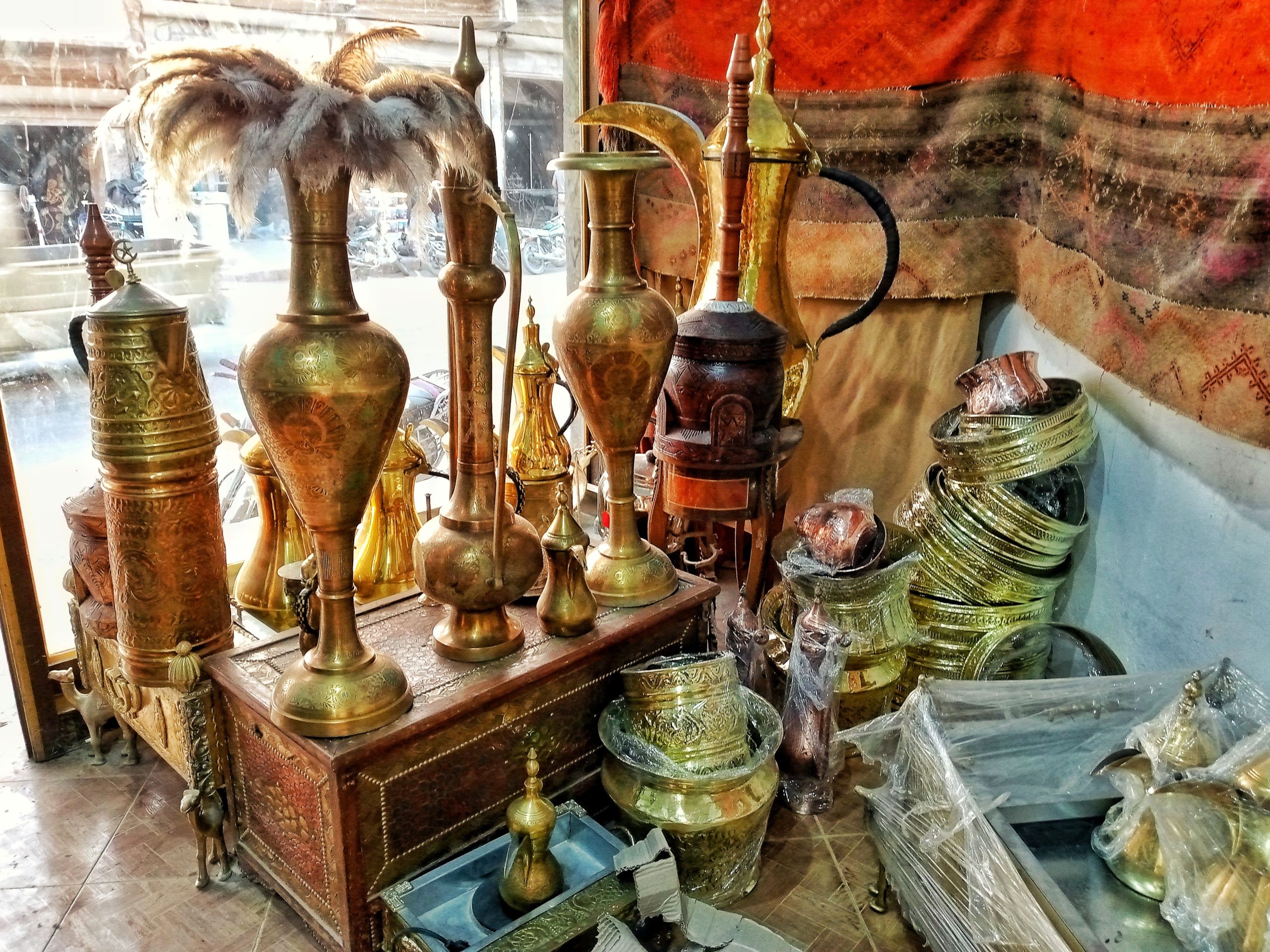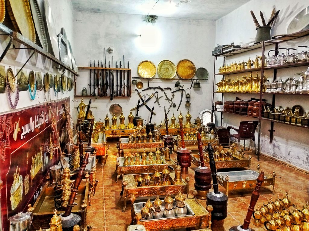 يقتني أبو راشد في محله، الذي أطلق عليه اسم “بيت جدي”، مختلف الأواني النحاسية بألوانها الأحمر والأصفر والأبيض، مستعرضاً “باعتزاز” مصبات القهوة والأباريق والصواني والمناقل والسيوف والخناجر والتحف الفنية القديمة، التي يعتمد عليها كمصدر دخل له، إلى جانب نيته الحفاظ على هذا الموروث التاريخي.