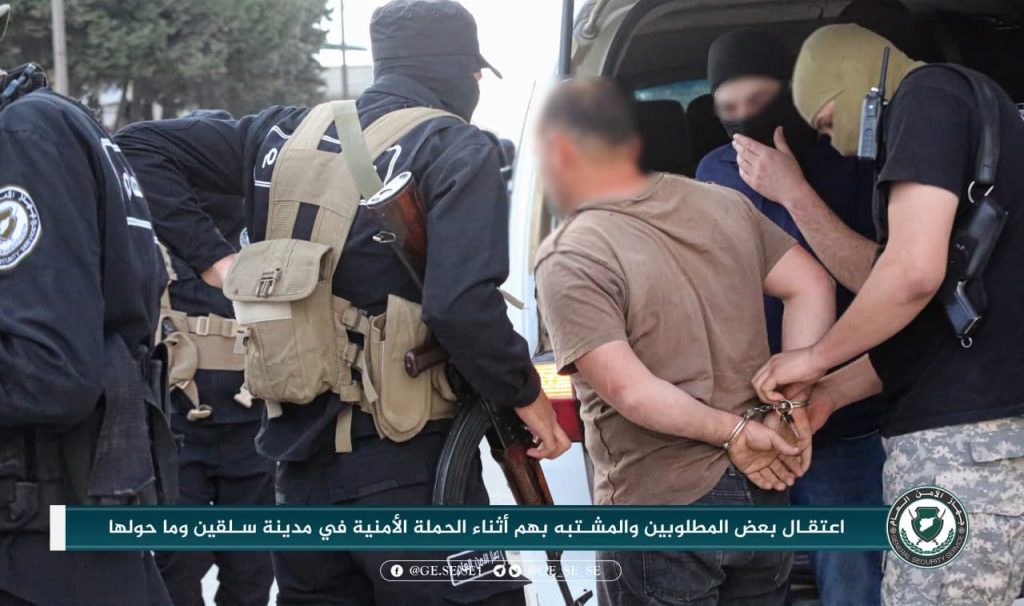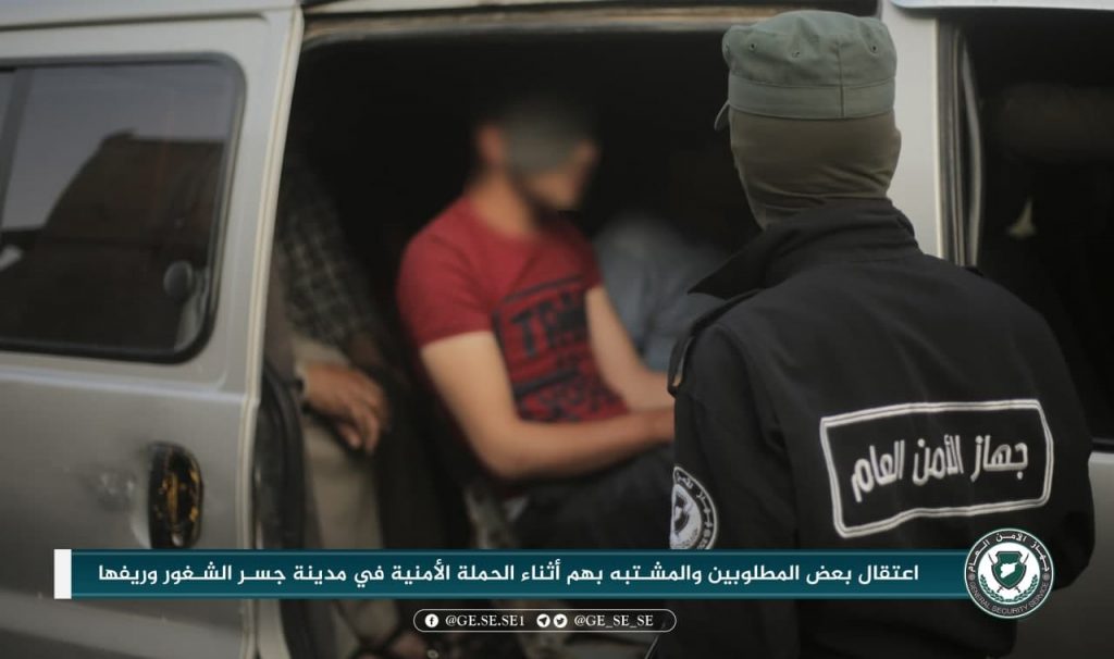 كما نشر صوراً في أثناء “اعتقال بعض المطلوبين والمشتبه بهم، أثناء الحملة الأمنية في مدينة جسر الشغور وريفها”.