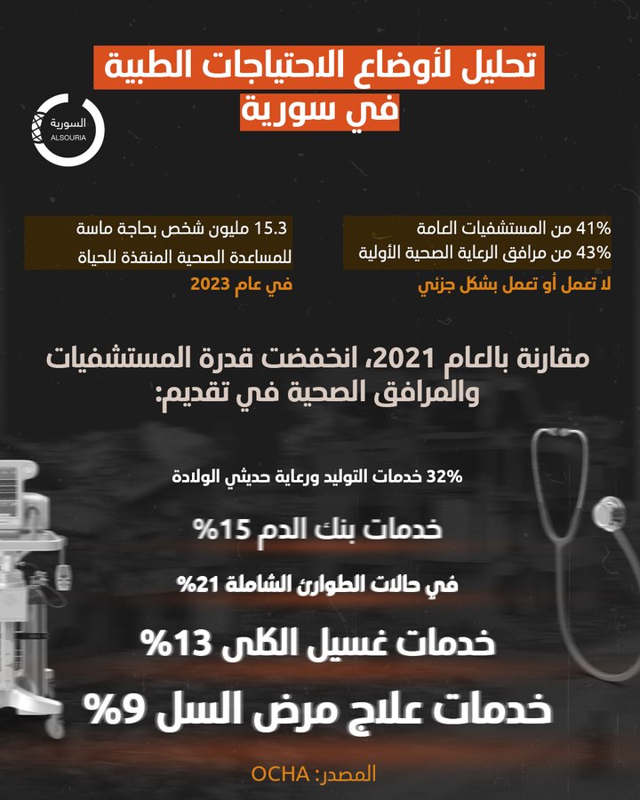 تراجع كبير لاستجابة القطاع الطبي في عموم المناطق السورية خلال 2022 في 07/12/2022 مشاركة المصدر السورية.نت مشاركة