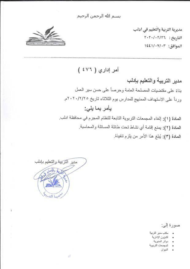 وبحسب بيانٍ صادر عن مدير التربية فإن القرار جاء “بناء على مقتضيات المصلحة العامة، وحرصاً على حسن سير العمل، ورداً على الاستهداف الممنهج للمدارس”، محذراً من ممارسة أي نشاط في تلك المجمعات، تحت طائلة المحاسبة والمساءلة.