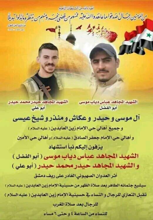 وعرف من بين القتلى: محمد عباس، مصطفى القطان، حسام المحسن، عباس الموسى، وحيدر حيدر.