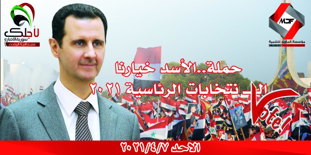 في حين تحدثت شبكات موالية للنظام في مدينة حلب، اليوم، أن كلاً من “مؤسسة الماجد للتنمية” و”موقع لأجلك سورية الإخباري” يعتزمان إطلاق حملة تحت عنوان “الأسد خيارنا”، وذلك في يوم 17 شباط / فبراير الحالي.