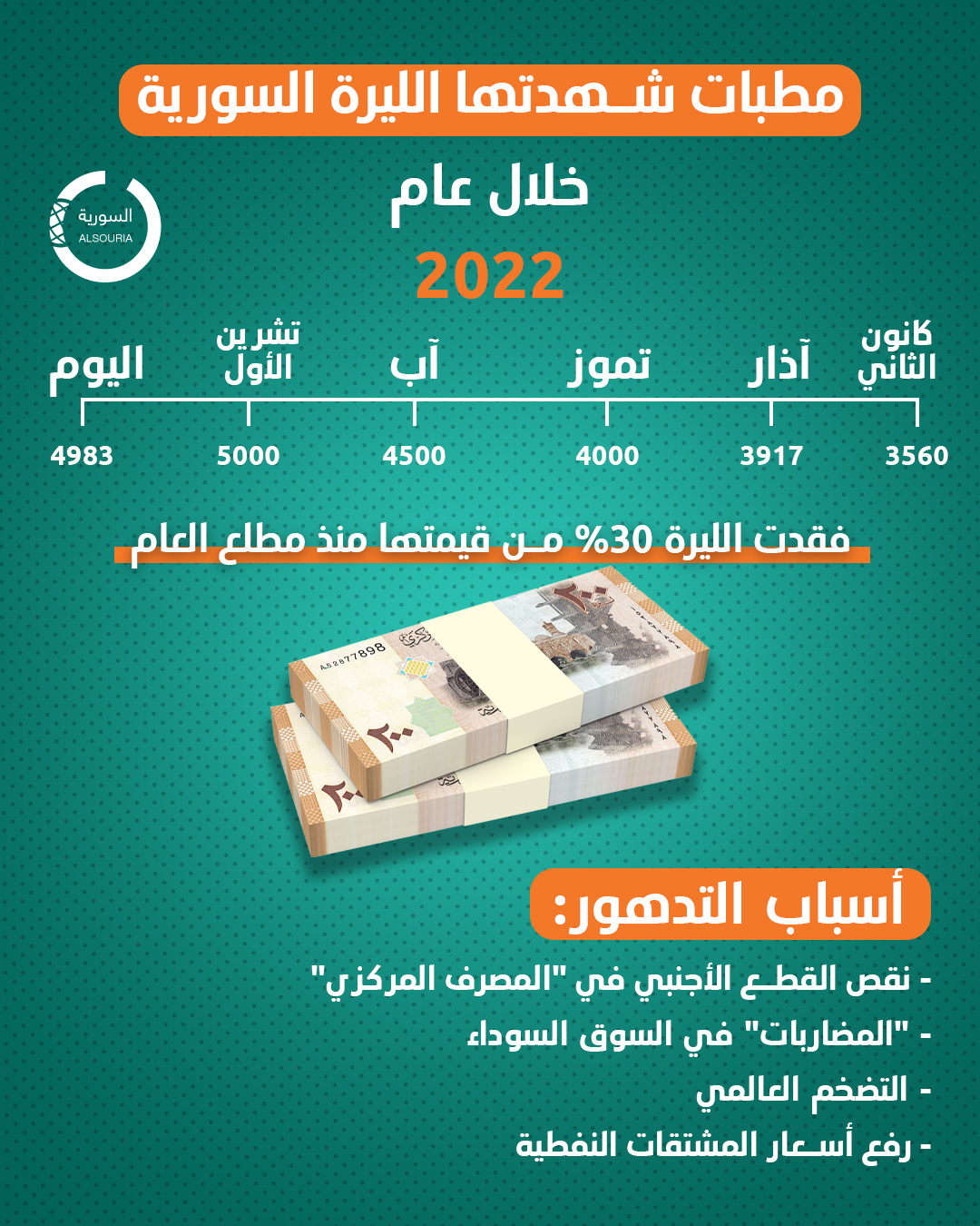 فقدت 30% من قيمتها..مطبات شهدتها الليرة السورية خلال 2022 في 21/10/2022 مشاركة المصدر السورية.نت مشاركة