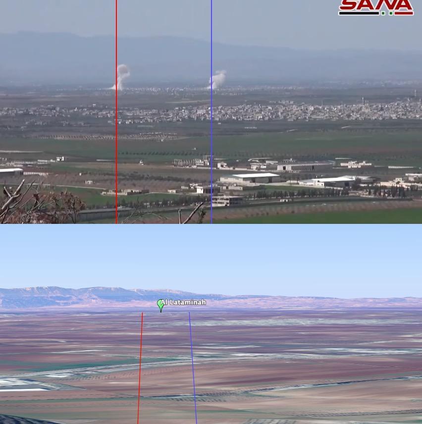 وكذلك رصد التحقيق لقطاتٍ في الفيديو لعلي عبد الله أيوب وهو يراقب غارات جوية على منطقة معينة، وعبر رسم خطوط مستقيمة على الخريطة تم التوصل إلى أنها في اللطامنة، دون إثبات أن الهجمات كيماوية.