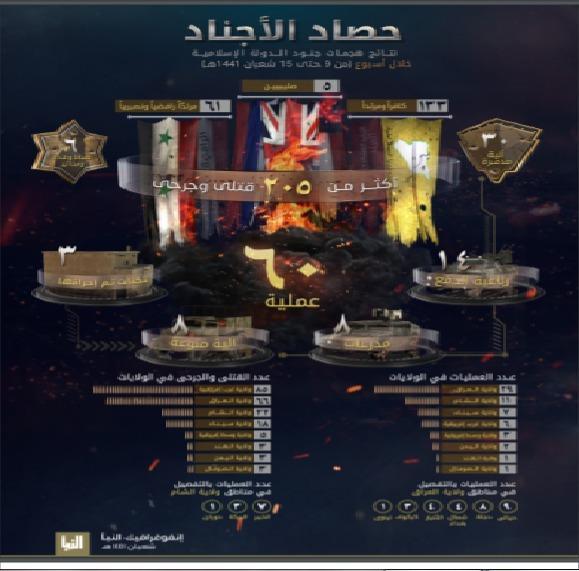 بحسب ما رصد فريق “السورية.نت” من العدد الأخير لصحيفة “النبأ” فإن تنظيم “الدولة” نفذ خلال أسبوع مضى 40 عملية هجومية في كل من سورية والعراق، والتي يطلق عليهما مسمى “ولاية الشام، ولاية العراق”، ما أدى إلى مقتل 88 مقاتلاً من ميليشيا “الحشد الشعبي” في العراق وقوات الأسد و”قوات سوريا الديمقراطية” في سورية.